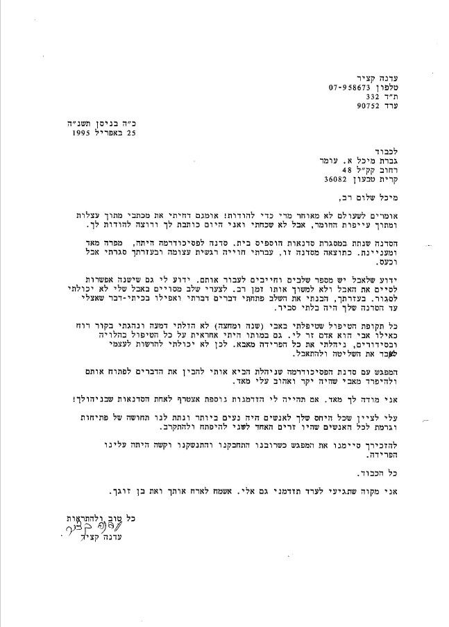 את מיכל הכרתי בזכות טיפול שעברה בתי, ואני הצטרפתי אליו לאחר תקופה.